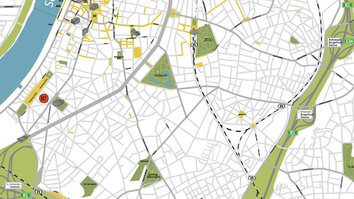 Afstappen in Antwerpen-Centraal / Antwerpen-Zuid (vanuit Gent). Vervolgens kan u ons kantoor bereiken per tram en/of bus.
